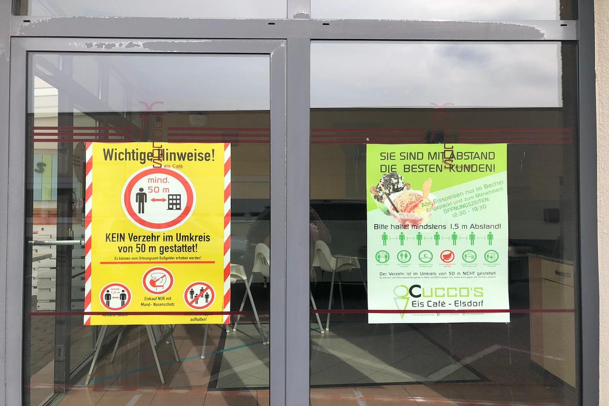Hinweise für die Abstands-Regelung bei Cucco’s Gelateria