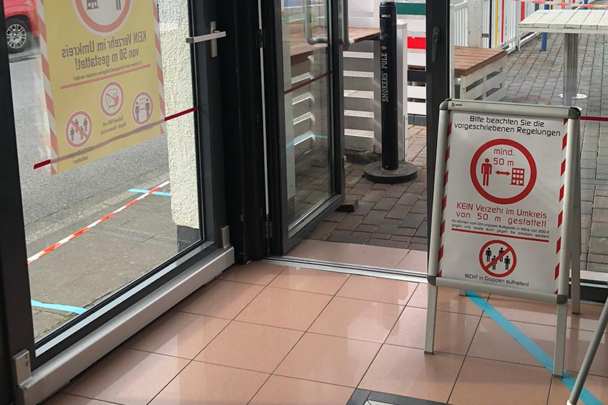 Kundenstopper mit Abstandsregel bei Cucco's Gelateria