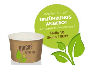 Die BIOCUPs werden in 5 verschiedenen Größen von 120 ml bis 500 ml angeboten. Zur Kundeninformation an der Eistheke gibt es Aufsteller und Aufkleber. Dazu sind alle BIOCUPS individuell bedruckbar. Vom 3. bis 7.2.2018 ordern Sie diese grünen Topseller zum Einführungspreis. Auf der renommierten Gelatissimo in Stuttgart gab es viel positive Resonanz. Was uns bestärkt in unserem Weg, das nachhaltige Sortiment weiter aus zu bauen.