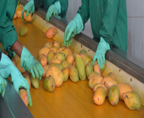 Mango Selektionsprozess Indien Fließband