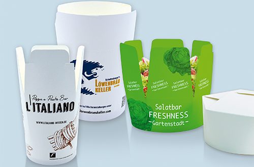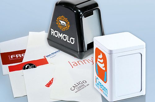 Custom designs go down well and are an effective form of advertising. A personalised appearance makes you more visible and promotes customer loyalty. The custom printing options available here are wide and varied – ranging from a simple logo on cups, serviettes and ice cream spoons through to exclusive carrier bags or personalised wrapping paper.