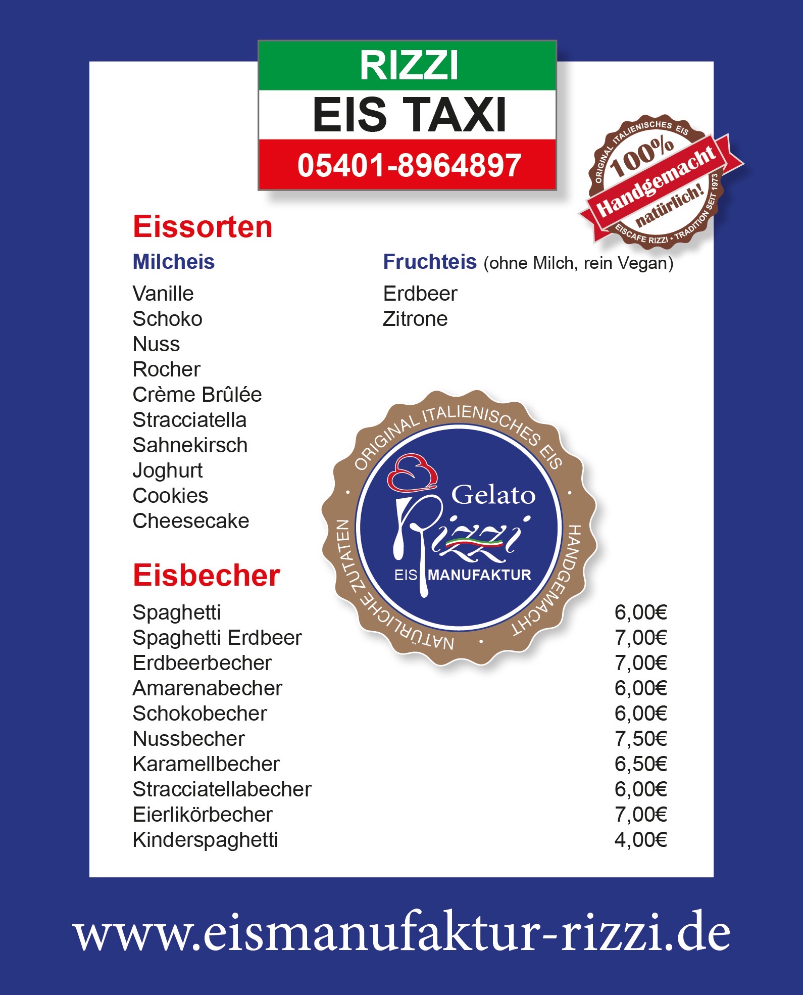 Über einen Shop “RIZZIHOME®” können ausgewählte Eissorten jetzt online oder telefonisch bestellt und später im Eiscafé abgeholt werden.
