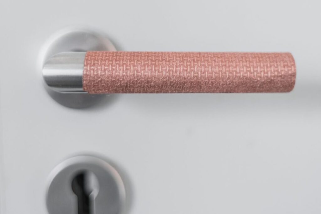 Shieldex®-Tape ist mit einer selbstklebenden Folie ausgestattet. Zur Anbringung einfach die Oberfläche staub- und fettfrei säubern, das Tape auf die gewünschte Größe schneiden und aufkleben. So können zum Beispiel Türgriffe sehr schnell hygienisch ausgestattet werden.