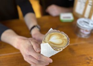 Alternativ zur Eiswaffel bietet das Café seine Heißgetränke im Becher an. Auch hier wird auf Nachhaltigkeit geachtet. Alle Becher sind biologisch abbaubar.