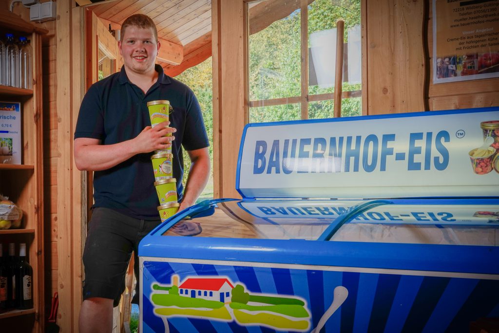 Familie Müller aus Gültlingen im Nordschwarzwald hat die Zeichen der Zeit schon früh erkannt und setzt seit 2006 auf Speiseeis, das direkt auf ihrem Bauernhof mit Milch aus der eigenen Milchwirtschaft produziert wird. Das Eis vom Haselstaller Hof wird ohne künstliche Zusatzstoffe hergestellt und bei der Abfüllung nicht, wie so manches Industrie-Eis, mit Luft aufgebläht. Das macht es sehr ergiebig. Dazu erfreut es mit seinem unverfälschten Geschmack und wunderbarer Cremigkeit.