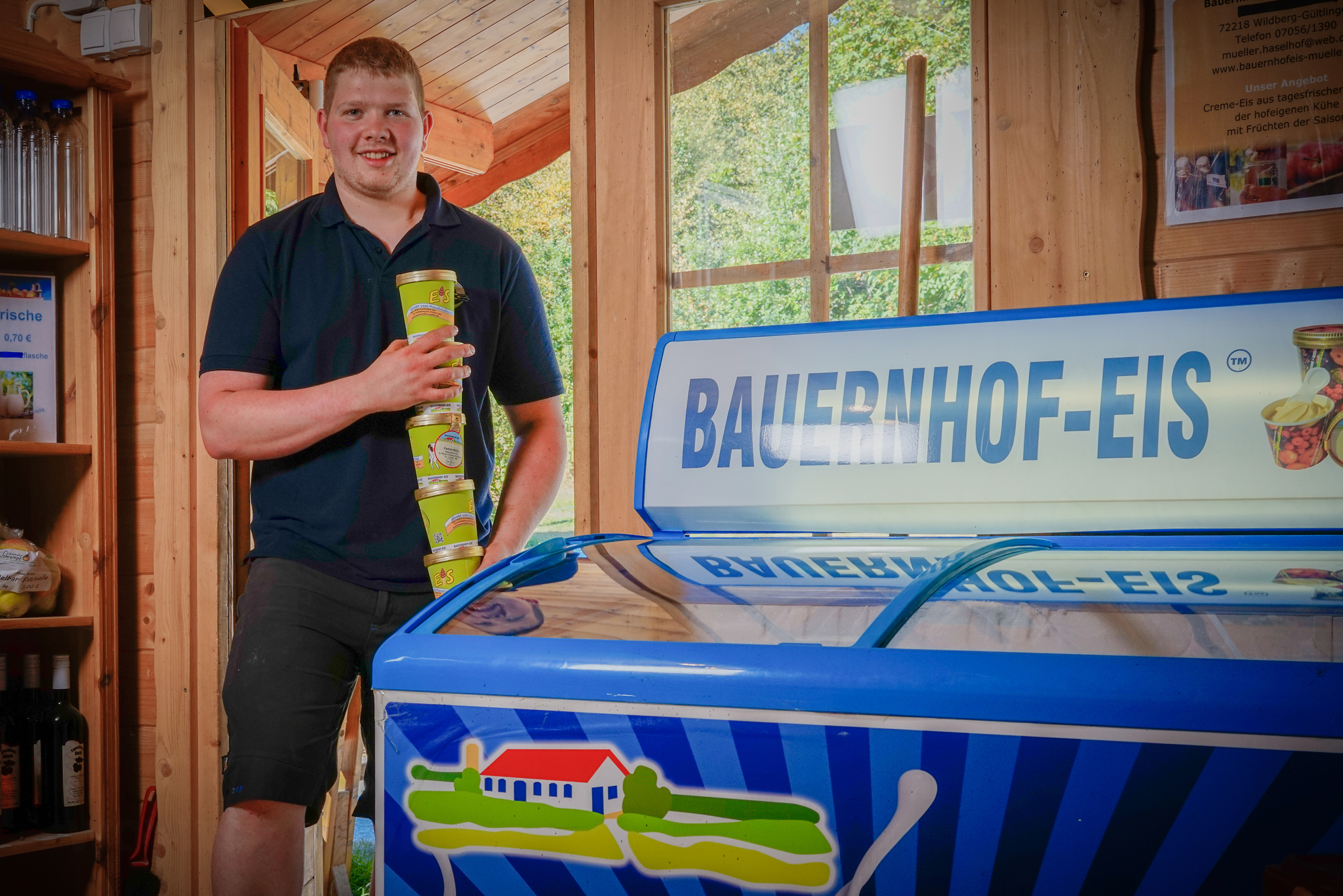 Im eigenen Hofladen wird Bauernhof Eis verkauft
